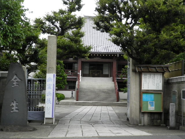 × [PR]上記の広告は3ヶ月以上新規記事投稿のないブログに表示されています。新しい記事を書く事で広告が消えます。 所在地 台東区谷中5-4-7 (全生庵) 東京都指定旧跡 三遊亭円朝墓さんゆうていえんちょう 昭和28年(1953)11月3日指定 初代三遊亭円朝は、通称出淵次郎吉といい、天保10年(1839)4月1日音曲師橘屋円太郎(出淵長蔵)の長男として江戸湯島切通町に生まれた。2代目三遊亭円生の門人となり、安政2年(1855)16歳で真打ちとなる。芝居噺で人気を博し『真景累ヶ淵』や『怪談牡丹燈籠』『塩原多助一代記』などを創作した。本業の話芸以外にも、點茶、華道、聞香、和歌、俳句、書画など和敬静寂の道に精通していた。建築、作庭にも秀で、自らの設計監督によって内藤新宿では、数奇屋造りの家屋や茶室、更に新宿御苑を借景とした百坪余の枯山水の平庭を完成させた実績もある。また、臨済禅の修行においても、山岡鉄舟や由利滴水の指導の下に参禅し、難しい公案を喝破して居士号を授けられた。更に書画古美術品に対する鑑識眼は極めて高く、毎年円朝忌を中心に円朝の収集した幽霊画が公開されている。明治33年(1900)8月11日62歳で死去した。墓石には、山岡鉄舟の筆により「三遊亭円朝無舌居士」とある。 平成13年(2001)3月31日設置 東京都教育委員会 PR